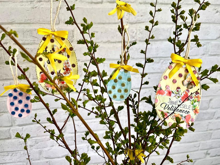 Magické papírové kraslice Návody 29. 3. 2026 Nechte se okouzlit barvami, které vás nepřestanou překvapovat. V tomto návodu si vyzkoušíte výrobu papírových kraslic s barvami Twin Magic od Cadence, které vykouzlí jemné pastelové odstíny a navíc se promění podle podkladu – jinak se vybarví na bílé a úplně jinak na černé. Připravte se na hravé tvoření plné efektů, které dodají vašim velikonočním dekoracím jedinečný vzhled. Vyzkoušejte s námi! Aktuality Jaro, Velikonoce Tvoření z papíru Tvoření pro děti Potřebný materiál a pomůcky: bílý nebo akvarelový papír obyčejná tužka nůžky barvy Twin Magic od Cadence štětec černý papír kancelářská děrovačka nebo kleště lepidlo sada podkladových papírů a vylupovacích obrázků s jarními motivy sada razítek s českými nápisy, popř. sada Jaro a Velikonoce černý razítkovací polštářek provázek a stužka černý liner (tenký fix) Postup: Na bílý papír předkreslíme vajíčko o velikosti cca 10 - 12 cm a vystřihneme. Kancelářskou děrovačkou vyrazíme z černého papíru cca 30 koleček - puntíků. Nalepíme je na papírové vejce po celé jeho ploše. Necháme pár vteřin zaschnout lepidlo a celé vajíčko přetřeme akrylovou barvou Twin-Magic. Tato barva je zajímavá tím, že se zabarví na bílém a černém podkladu do odlišných barev. Nabízíme je v mnoha odstínech, stačí si jen vybrat tu nejzajímavější dvojici právě pro vás. Já jsem si vybrala žluto-červenou variantu - takže vejce je žluté a puntíky jsou červené. Barvu necháme pořádně zaschnout nebo vyfoukáme horkovzdušnou pistolí, pokud nás tlačí čas. Nachystáme si několik obrázků a také malou cedulku na nápis "Veselé Velikonoce" nebo "Vítej jaro". Obrázky i cedulku s textem nalepíme na vajíčko. Nakreslíme ozdobný rámeček černým tenkým fixem. Kleštěmi uděláme nahoře otvor, kterým provlečeme provázek. Nakonec ještě umotáme ze stuhy úhlednou mašličku a nalepíme na provázek. A máme hotovo! Další naše tipy pro vás: Kraslice můžeme ozdobit z obou stran - váza s větvičkami pak nemusí stát jen u zdi, ale můžeme ji postavit do prostoru, třeba doprostřed jídelního stolu. Kromě takto nazdobených kraslic můžeme vyrobit několik ve variantě, kde budou jen puntíky......dohromady pak budou vajíčka působit na větvičkách perfektně. Kromě obrázků můžeme zdobit jarními razítky - sada Jaro a Velikonoce nebo Jaro. Tyto kraslice můžeme také využít jako velikonoční visačky na dárky nebo jako polotovar k výrobě přáníčka. Zpět do kategorie Další podobné články Návody Velikonoční slepička 23. 3. 2026 Vyrobte si roztomilou velikonoční slepičku z papíru, která ozdobí váš domov nebo potěší jako milý dárek. Jednoduchý návod zvládnou i začátečníci a tvoření si užijí i děti. Stačí špetka kreativity a jaro může začít! Návody Jednoduchý stojánek na vajíčko 18. 3. 2026 Oživte velikonoční stolování efektním detailem - stojánkem, v kterém i obyčejná kraslice vypadá šik. Papírový stojánek na vajíčko ozdobený razítky je jednoduchý na výrobu a nabízí spoustu prostoru pro vlastní kreativitu. V návodu vám ukážeme, jak si ho snadno vytvořit. Návody Rozkvetlá vejce 17. 3. 2026 Dejte vyfouknutým vajíčkům nový život a proměňte je v něžné jarní dekorace - rozkvetlé tulipánky. Originální „květinová“ vajíčka krásně doladí velikonoční výzdobu a přinesou do vašeho domova svěží jarní atmosféru. V návodu vám ukážeme, jak na to.