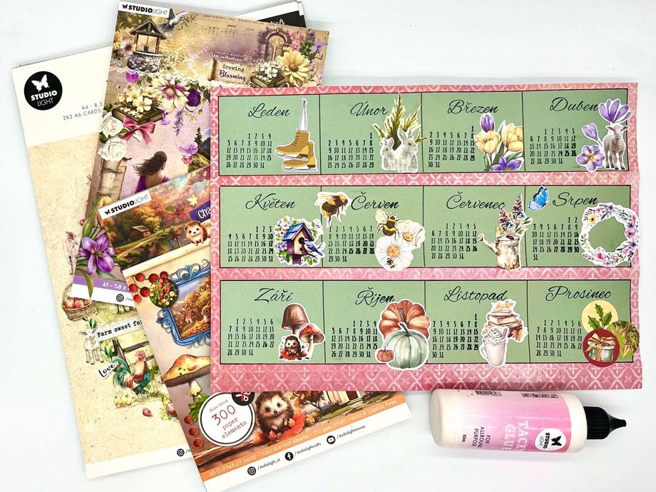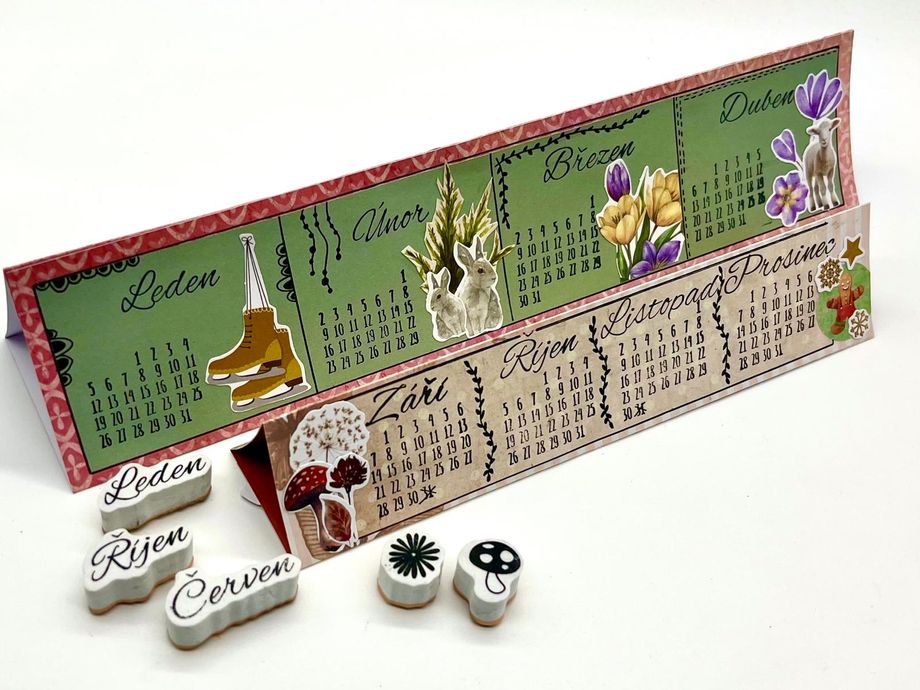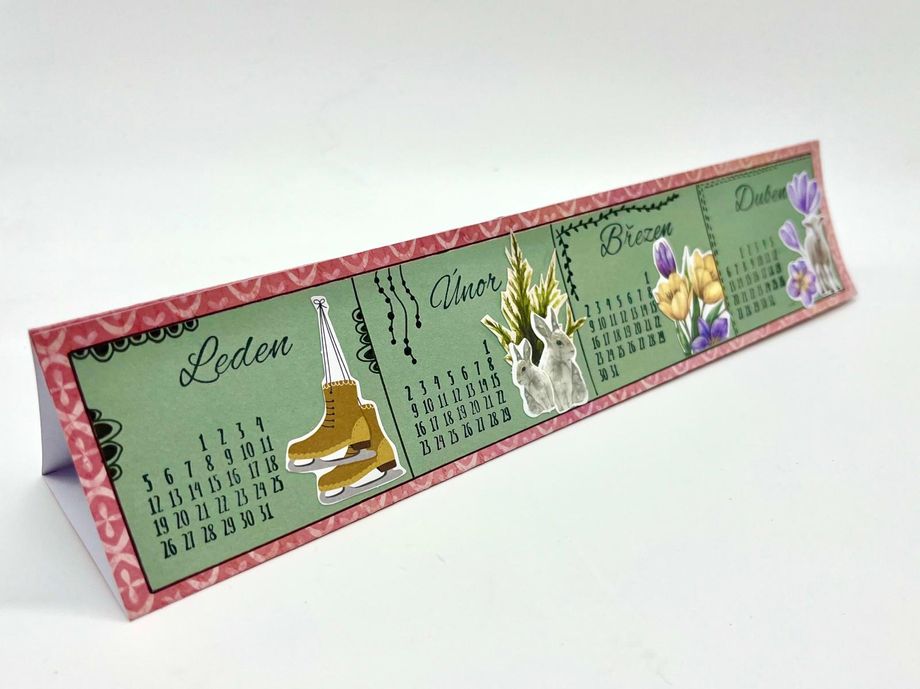 Jednoduchý kalendář Návody 20. 1. 2026 Hledáte jednoduché tvoření, které je zároveň praktické? V tomto návodu vám ukážeme, jak vyrobit malý stolní kalendář, který se vejde na pracovní stůl i poličku. Zvládnou ho dospělí i děti a výsledek vám bude dělat radost po celý rok. Aktuality Bullet Journal Tvoření z papíru Potřebný materiál a pomůcky: Barevný nebo vzorovaný papír Jednobarevný papír Pravítko Obyčejná tužka Tekuté lepidlo Nůžky Knihařská kost na rýhování Černý liner Sada razítek „Kalendárium“ Sada razítek „Roční období“ Černý razítkovací polštářek Vylupovací obrázky Postup: 1. Nachystáme si barevný nebo vzorovaný papír o velikosti A4 a narýhujeme ho dle nákresu a jednotlivá políčka naohýbáme. 2. Z jiného, tentokrát jednobarevného papíru (doporučujeme světlejší odstín), si nachystáme 3 proužky o velikosti 28 x 5,5 cm a nalepíme je doprostřed jednotlivých políček. 3. Každý pásek rozdělíme na čtyři stejná políčka, rýsujeme černým tenkým fixem. Vznikne nám tak 12 obdélníčků – na každý měsíc v roce jeden. 4. Do každého políčka narazítkujeme černým razítkovacím polštářkem příslušné kalendárium a také název měsíce. 5. Dozdobíme vylupovacími obrázky. 6. Černým linerem ještě můžeme dokreslit drobnosti – ozdobné rámečky, kytičky, lístky apod. 7. Poslední úzké políčko kalendáře potřeme lepidlem a slepíme celý kalendář v trojúhelníkový stojánek. Máme hotovo. Další tipy pro vás: Políčka můžeme také nazdobit některými z široké nabídky razítek. Také samolepky budou k dozdobení kalendáře perfektní. Kalendář můžete zhotovit i v jiných velikostech. Produkty, které by vás mohly zajímat (8) Kód: SL-ES-GLUE02 Tekuté lepidlo, 85 ml -30% Kód: 0042984 Liner Tombow Mono - černý Kód: SL-CO-INKP24 Razítkovací polštářek Studio Light, voděodolný - černý Doporučujeme Kód: 03939 Diářová razítka Bullet Journal, 25 ks - Kalendárium Kód: 55025 Diářová razítka Bullet Journal, 33 ks - Roční období Kód: SL-ES-DCPP310 Kreativní blok s výseky "Country Roads", A4, 28 l. - Na venkově Kód: JMA-GB-DCPP318 Blok s papírovými výseky "Growing & Blooming", A5, 20 l. Kód: SL-CA-DCPP363 Blok s papírovými výseky "Charming Autumn", A5, 20 l. - Líbezný podzim Zpět do kategorie Další podobné články Návody Jak vyrobit vlastní washi pásku 31. 12. 2025 Washi pásky jsou důležitou dekorativní součástí každého diáře. Není potřeba kupovat pořád další, ukážeme vám, jak lze pomocí razítek snadno vyrobit vlastní. Návody Vylaďte si kreativní diář dle svých představ 31. 12. 2025 Váš bullet journal nemusí být jen praktický, ale i krásný. Jak nazdobit jeho obal, který je nejen funkční, ale i estetický? Nechte se inspirovat v článku, kde najdete přehledné tipy a postupy, jak ho vkusně ozdobit, aby vás bavilo brát ho do ruky každý den. Návody Krabička z papíru na "neforemné" dárky 21. 12. 2025 Zabalit neforemný dárek bývá malá noční můra – papír se trhá, rohy odstávají a výsledek nikdy nevypadá tak, jak bychom si přáli. S jednoduchou papírovou krabičkou si ale poradíte i s těmi nejproblematičtějšími tvary. V tomto návodu vám krok za krokem ukážeme, jak si krabičku snadno vyrobit doma, rychle a bez…
