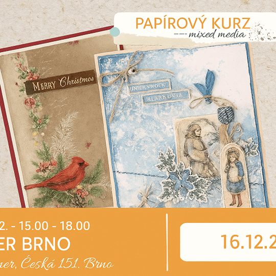 Ponořte se s námi do fascinujícího světa mixed media a art journalingu! Tento kurz vás provede kreativním procesem, při kterém budete vytvářet jedinečné umělecké stránky. Ukážeme vám, jak vrstvit bohaté kompozice se zimními a vánočními motivy. V průběhu kurzu budeme vše ztvárňovat pomocí rozmanitých technika materiálů. Naučíte se, jak pracovat s různými médii, jako jsou různé barvy, pasty, inkousty, razítka, kousky papírů a další dekorativní prvky. Tento kurz je pro všechny (i pro začátečníky), kdo chtějí objevit nové techniky a vytvořit si vlastní umělecký příběh. Těšíme se na společné tvoření!