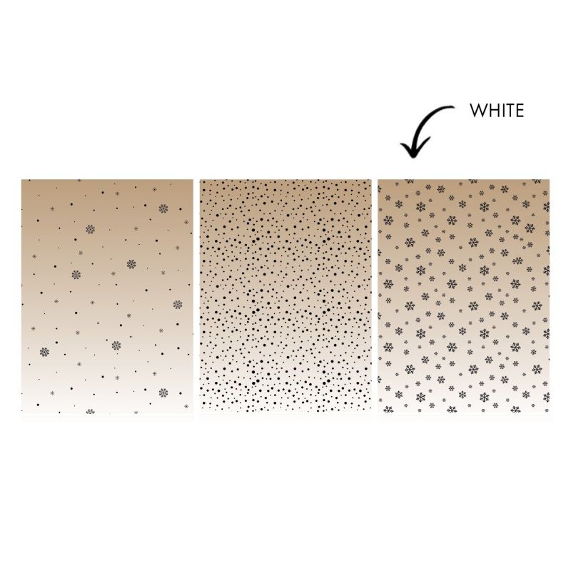 Průhledná fólie s potiskem bílých sněhových vloček vhodná jako průhled do přání, dárkových krabiček, okének luceren, domečků apod. Obsahuje 2 x 3 designy, celkem 6 archů formátu A4. Celý popis
