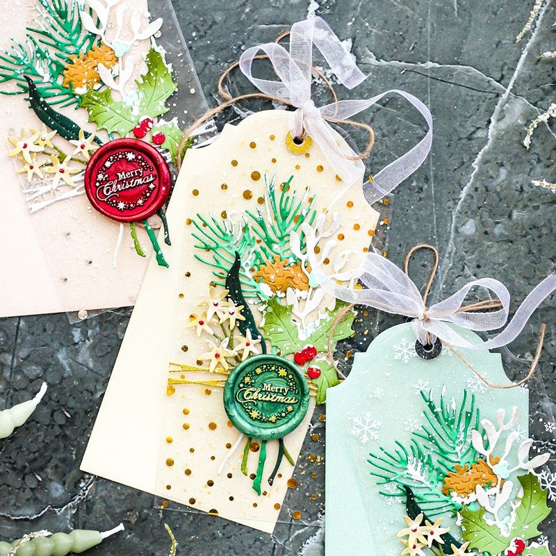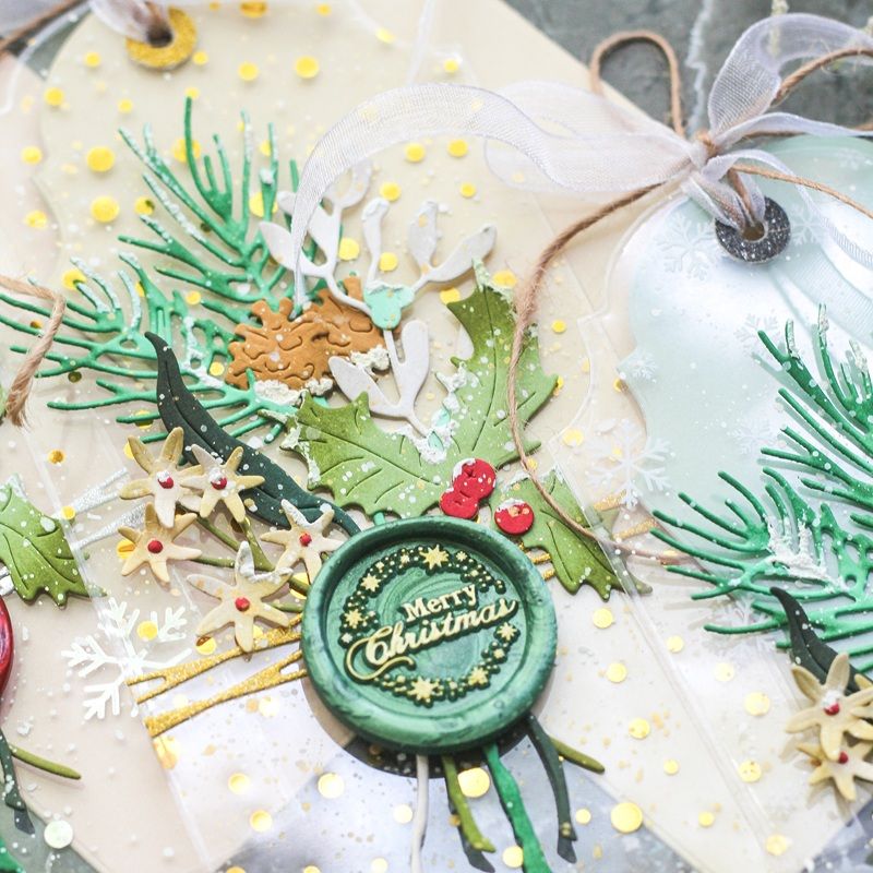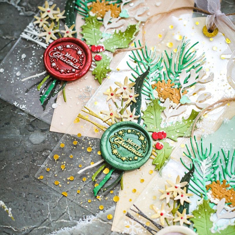 Pevná průhledná fólie s potiskem sněhových vloček. Použít můžete celé archy nebo jen detaily, které lze vystřihnout, popř. vyřezat na strojku typu Big Shot nebo pomocí raznic.