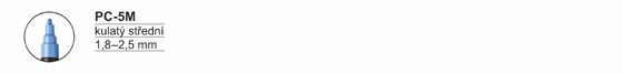 • odolný kulatý střední hrot, šíře stopy 1,8 - 2,5 mm