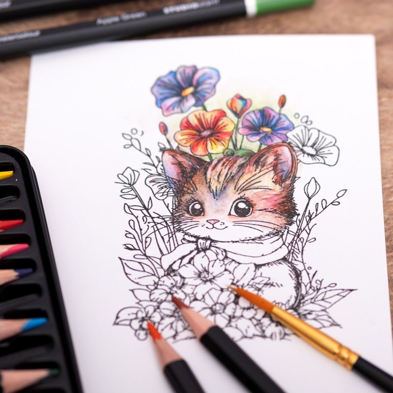 Skvěle se hodí i na vybarvování omalovánek, doporučujeme si vyzkoušet i kolorování obrázků natištěných razítky. Pro blendování barviček doporučujeme použít vodní štětce.