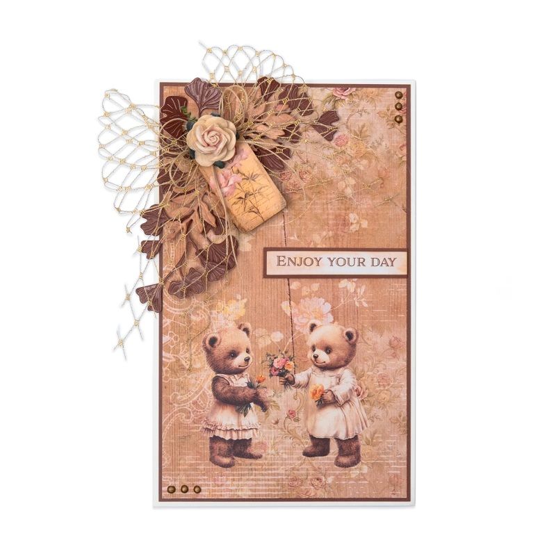 Kreativní sada papírů v bloku s motivy plyšového medvídka z kolekce Teddy’s Tea Time („méďův čajový dýchánek“) se hodí na scrapbooking, cardmaking a další vyrábění. Podkladový kreativní papír skvěle poslouží jako základ projektu, na který lze vrstvit další prvky – třeba naše oblíbené papírové výseky.