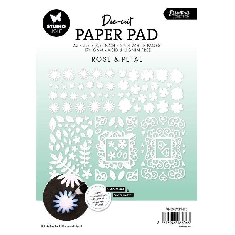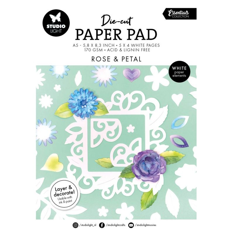 Blok s papírovými výseky Studio Light, A5, 20 l. - Bílé květiny