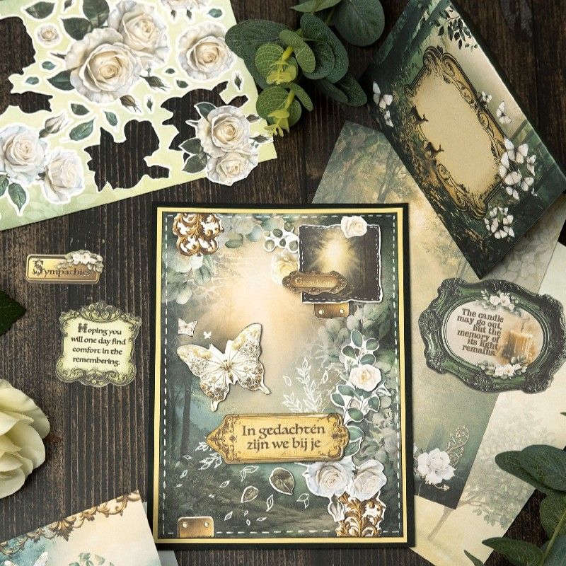 Motivy jsou určené k výrobě kondolenčních přání – ruční výrobek představuje vřelé, osobní gesto k vyjádření účasti a soucitu, i když jeho tvorba může být nesnadná. Doufáme, že v této sadě naleznete vkusnou a taktní pomoc a že přání bude moci poskytnout vašim bližním útěchu.