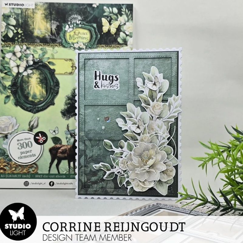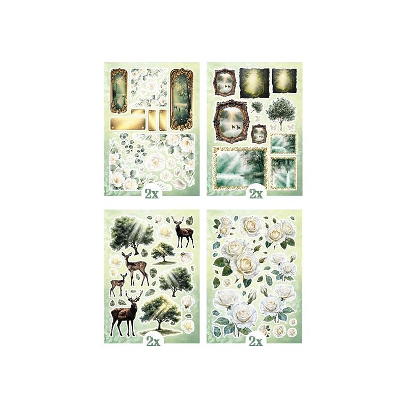 Sada papírových obrázků v bloku ze smuteční kolekce Quiet Morning. Jednotlivé motivy jsou předvyseknuté, obrázky stačí ze stránky lehce vyloupnout k dalšímu tvoření, nemusí se vystřihovat.