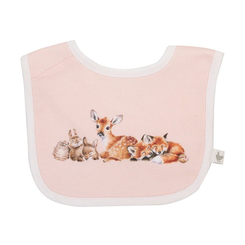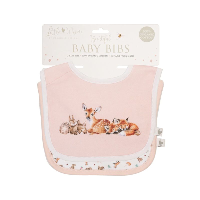 Dětské bryndáky ve sladěné sadě budou skvělým dárkem do výbavičky pro nastávající rodiče či novorozené miminko! Zdobí je akvarelové ilustrace mláďat lesních zvířátek, jako jsou liščata, koloušci a králíčci na bílém a růžovém pozadí. Vzadu je jednoduché zapínání na patentku k pohodlnému navlékání i sundávání.