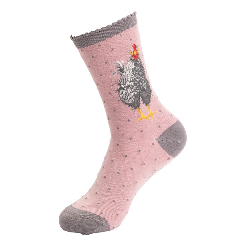 Veselé ponožky s vyšitou slepičkou a ozdobným lemem jsou vtipným dárkem pro ženy k jakékoli příležitosti – ať už budou vykukovat z tenisek nebo dělat parádu jenom doma.