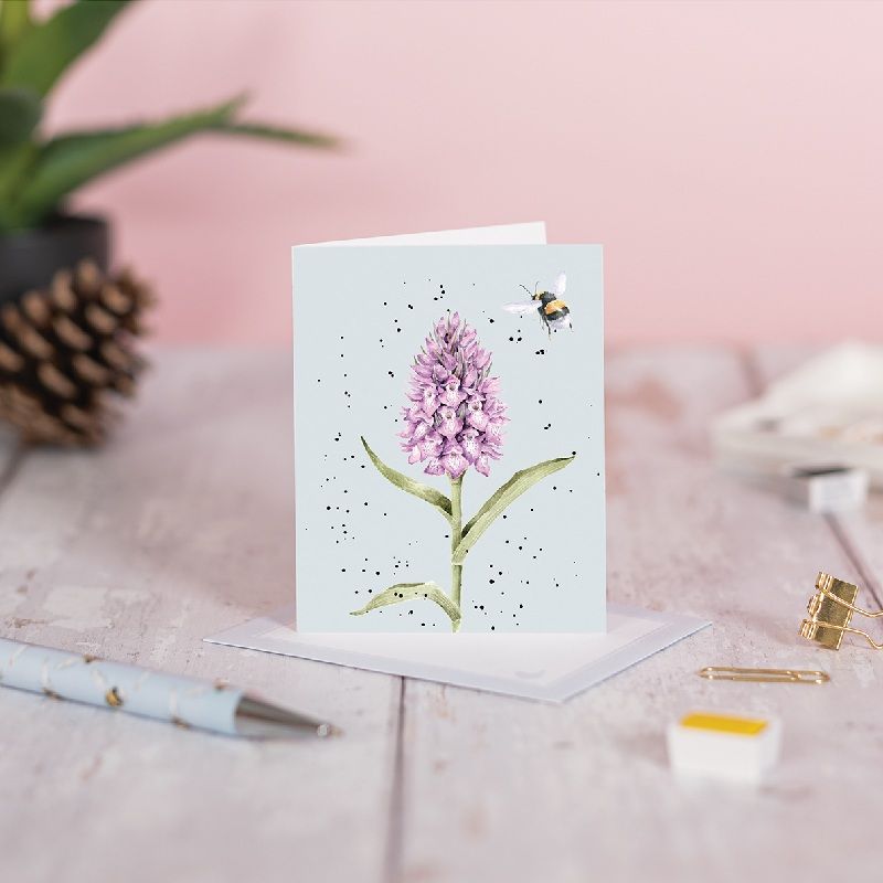 Dárková kartička Wrendale Designs "Marsh Orchid" - Prstnatec a včelka