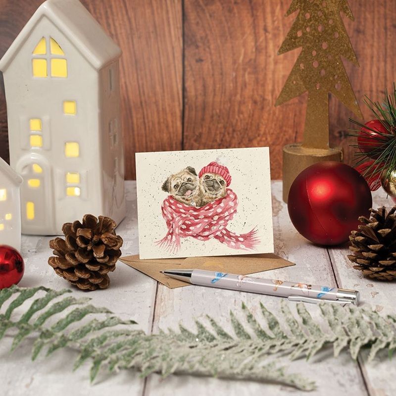 Dárková kartička Wrendale Designs "Snug As A Pug" - Psi, vánoční