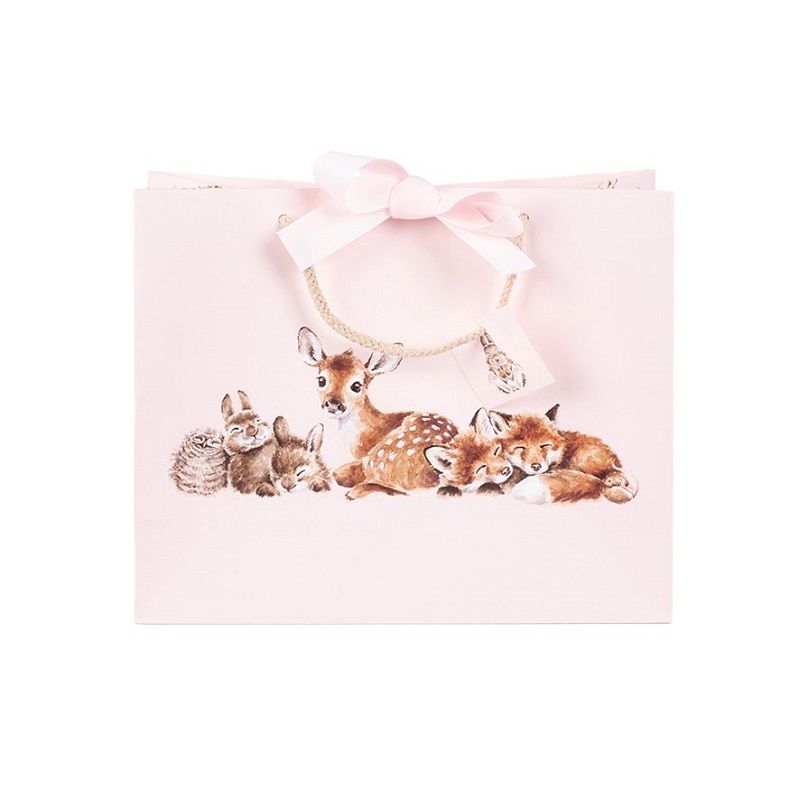 Velká dárková taška dekorovaná akvarelovými motivy mláďat lesních zvířátek na růžovém pozadí je skvělá k obdarování miminek i nastávajících rodičů. Jako všechny dárkové taštičky od Wrendale Designs je vyrobena z kvalitního pevného kartonu, poutka jsou z příjemných pletených provázků a lze ji zavázat grosgrénovou stužkou. Z boků je taštička potištěna obrázky zvířátek, své věnování můžete vepsat na ilustrovanou visačku.