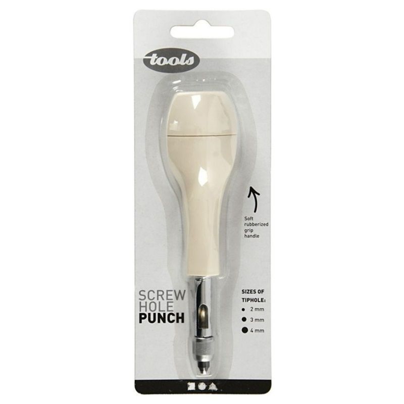 Součástí balení jsou 3 různé kovové nástavce, které lze vyměňovat a vytvářet jimi kruhové otvory o průměrech 2 mm, 3 mm nebo 4 mm. Tyto nástavce lze bezpečně uložit do pouzdra na rukojeti nástroje, takže se neztratí, když je nepoužíváte. S děrovačem se snadno manipuluje, výměna hrotů je jednoduchá.