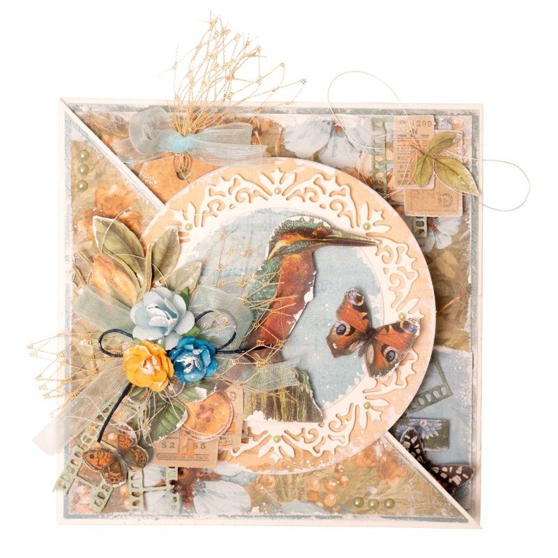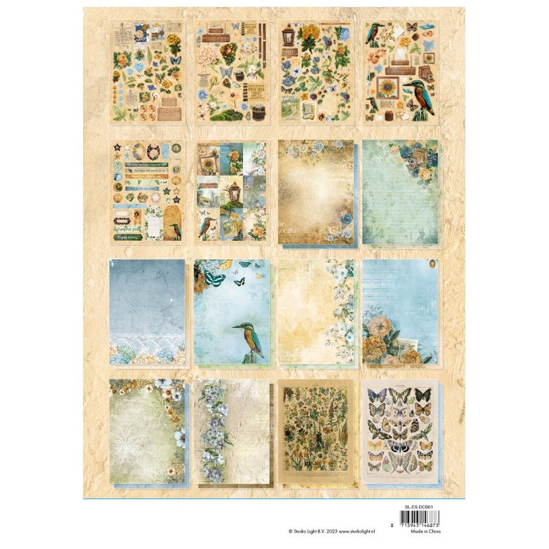 Obsahuje 32 zdobených papírů s motivy květin a listů, motýlků a ptáčků – 2 x 10 oboustranných vzorovaných papírů a 2 x 6 listů s předvyseknutými obrázky pro snadné vyloupnutí z archu a okamžitému použití (není třeba vystřihovat). Formát A4.
