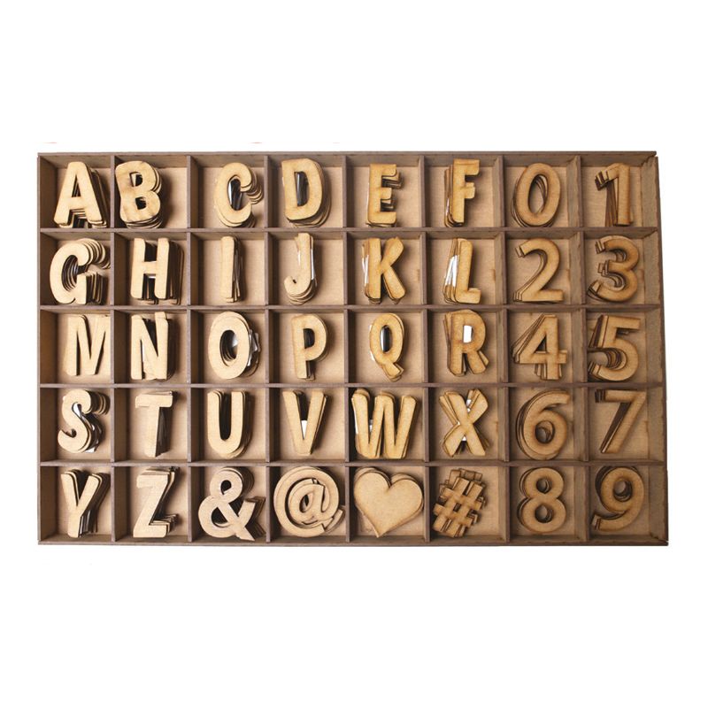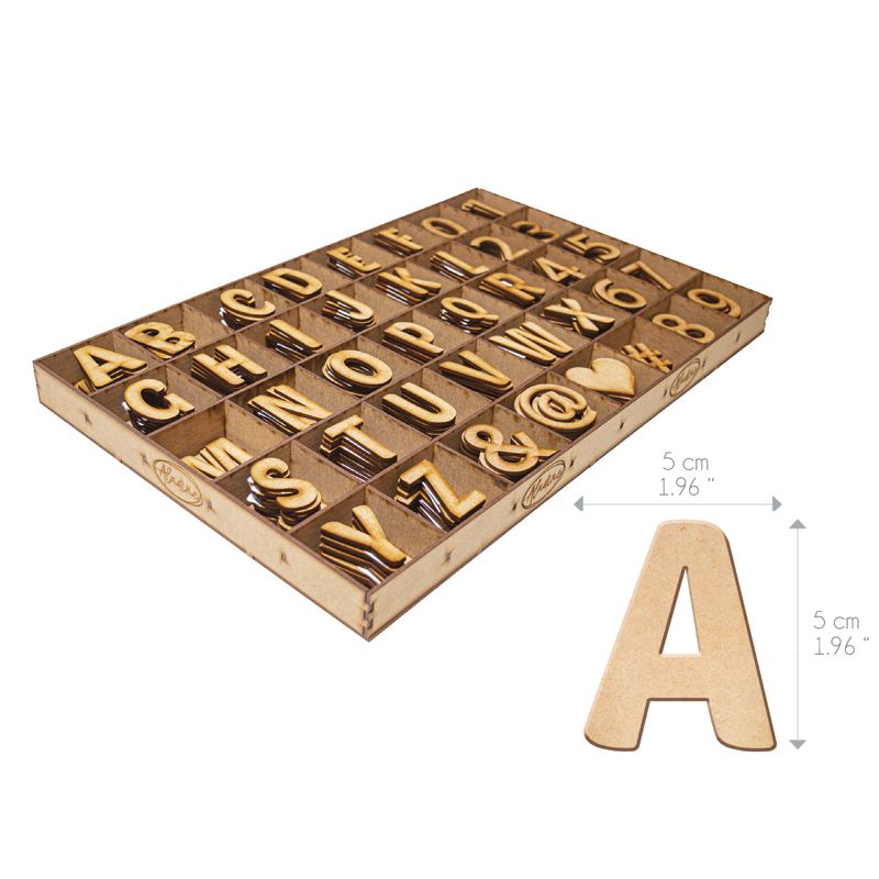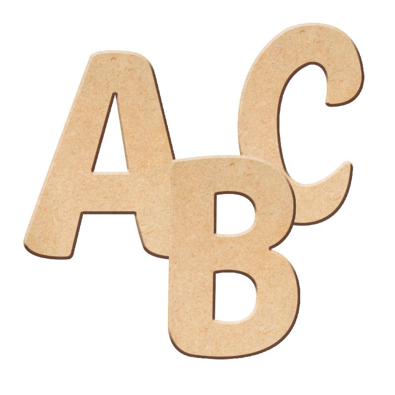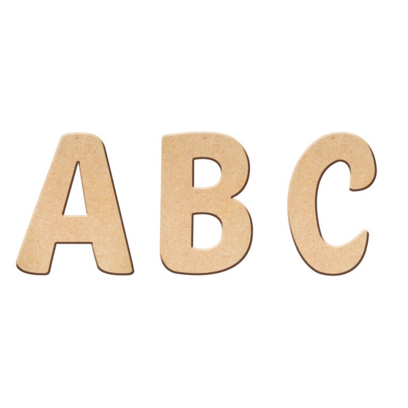 Písmenka jsou vyřezána z MDF desek s velmi jemnou strukturou. Jedná se o zcela přírodní materiál, neboť se vyrábí bez použití lepidel, lisováním.
