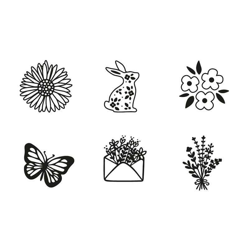 Kulatá razítka s květinkami, zajíčkem a motýlem vhodná na nejrůznější tvoření nejen v období jara a Velikonoc. Dřevěná razítka se řadí mezi nejkvalitnější na trhu – mají dlouhou životnost, tisk je plný a dokonalý.