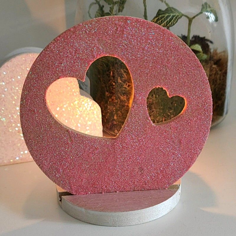Dřevěný polotovar na výrobu dekorací. Balení obsahuje podstavec, do kterého lze tvar zasadit. Za ním je v podstavci otvor na elektrickou čajovou svíčku, která svým osvícením vytvoří romantický efekt.