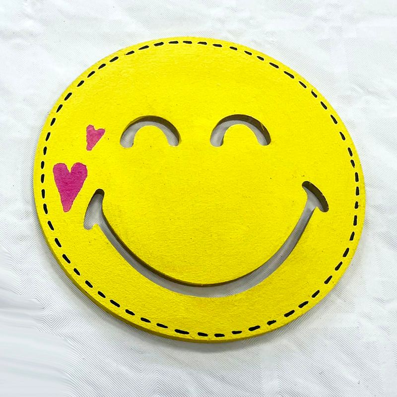 Dřevěný polotovar na výrobu dekorací. Je součástí zbrusu nové kolekce ve spolupráci s firmou Smiley World, domovinou originálního motivu, který se v posledních 50 letech stal neodmyslitelnou součástí populární kultury. Lze ho zasadit do stojánku a postavit do prostoru, či ho zavěsit na stěnu.