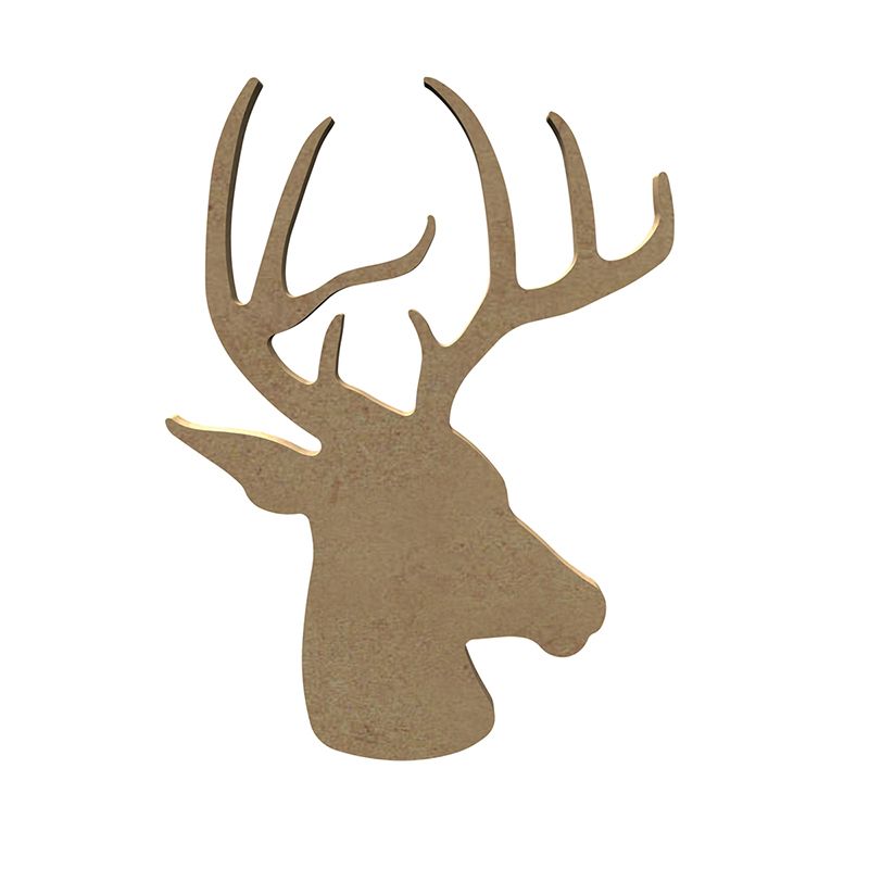 Dřevěný výřez ve tvaru hlavy jelena k dotvoření. Přírodní odstín bez povrchové úpravy. Vhodný pro děti i dospělé. Rozměr 15 x 12 cm, tloušťka materiálu 6 mm. 1 kus. Celý popis