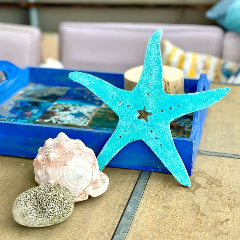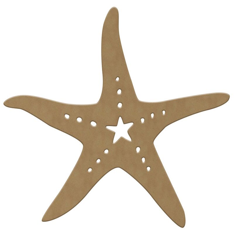 Dřevěný výřez ve tvaru mořské hvězdice k dotvoření. Přírodní odstín bez povrchové úpravy. Rozměr 25 x 23 cm, tloušťka materiálu 6 mm. 1 kus.