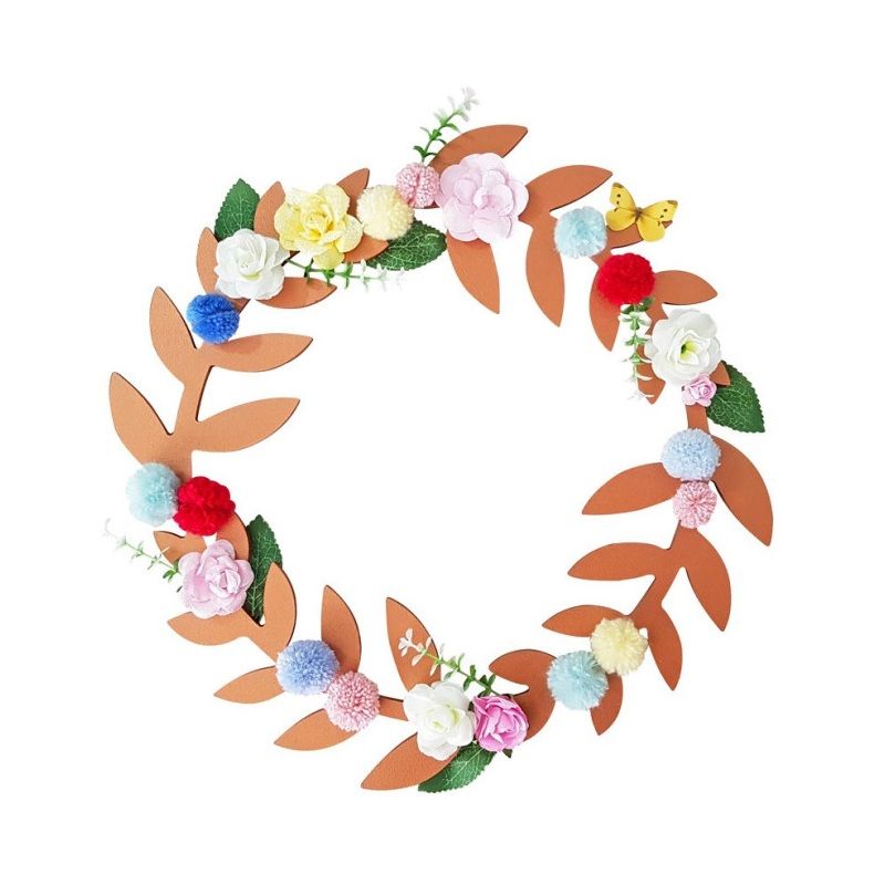 Dřevěný výřez ve tvaru věnce s listy k dotvoření. Přírodní odstín bez povrchové úpravy. Vhodný pro děti i dospělé. Průměr 35 cm, tloušťka materiálu 6 mm. 1 kus. Celý popis