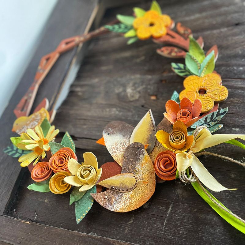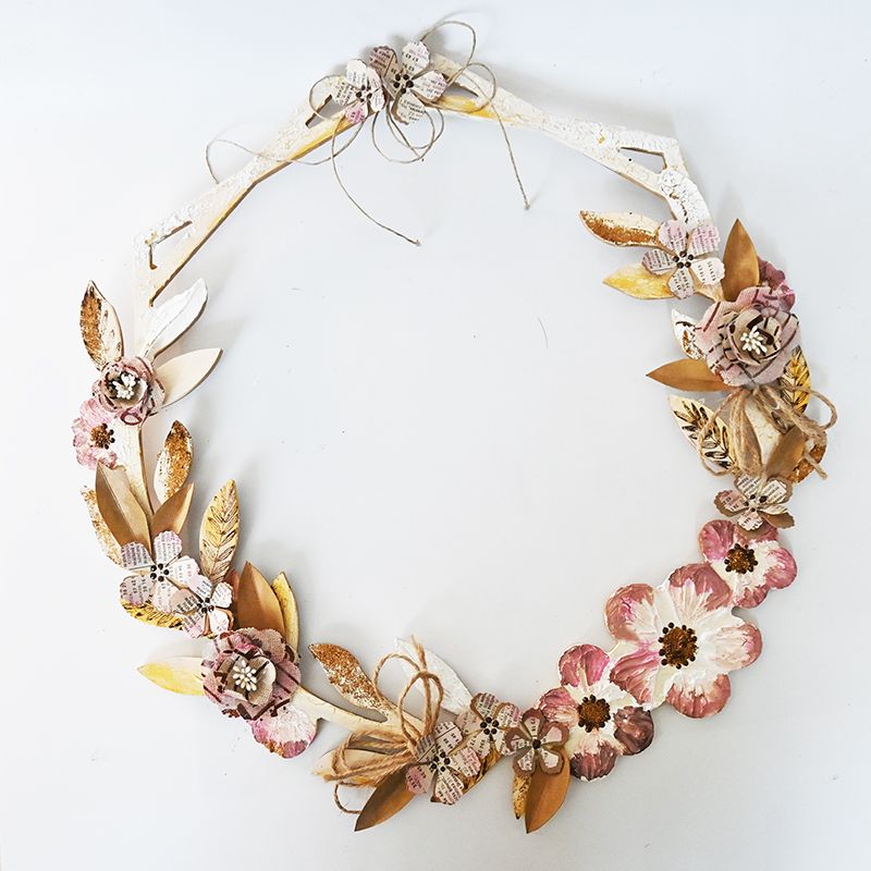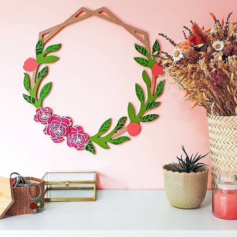 Dřevěný výřez k dekoraci Gomille, 36x37 cm - Věnec květinový