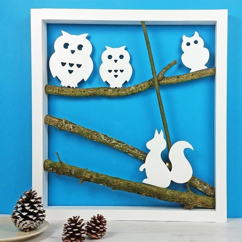 • Kombinování: kombinovat dohromady můžeme nejenom různé techniky, ale i různé výřezy dohromady. Pomocí dřevěné abecedy můžeme vytvořit třeba něčí jméno, které spolu s doprovodným obrázkem zasadíme do stojánku – to může být zábavná aktivita obzvlášť pro malé umělce, kteří si pak vystaveným dílem můžou třeba „podepsat“ svůj pokojíček.