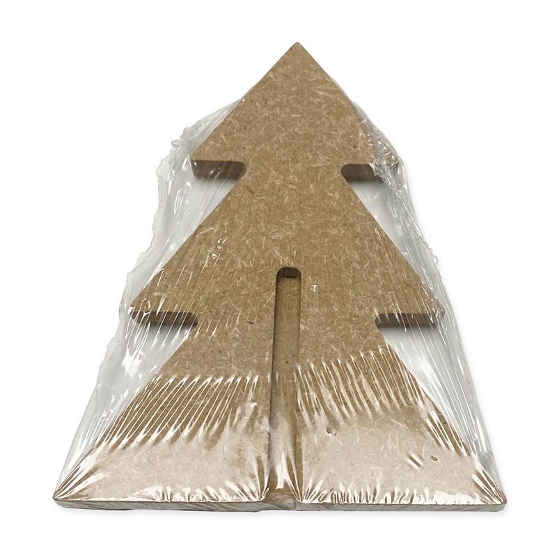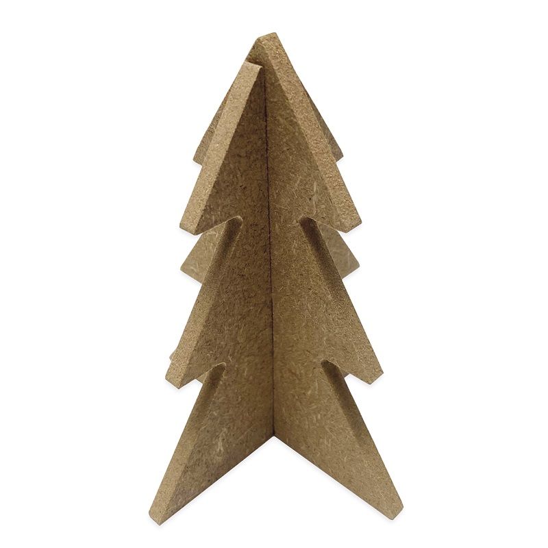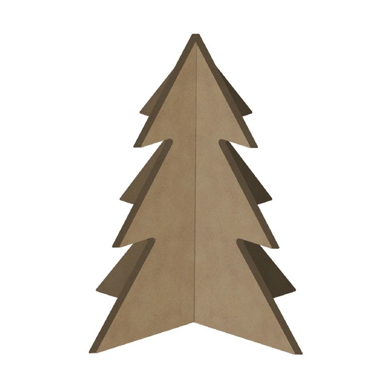 Dřevěný polotovar na výrobu dekorací. Skládá se ze dvou plochých částí, které se do sebe zaklesnou a vytvoří trojrozměrný stromek. Vhodný na umístění do prostoru.