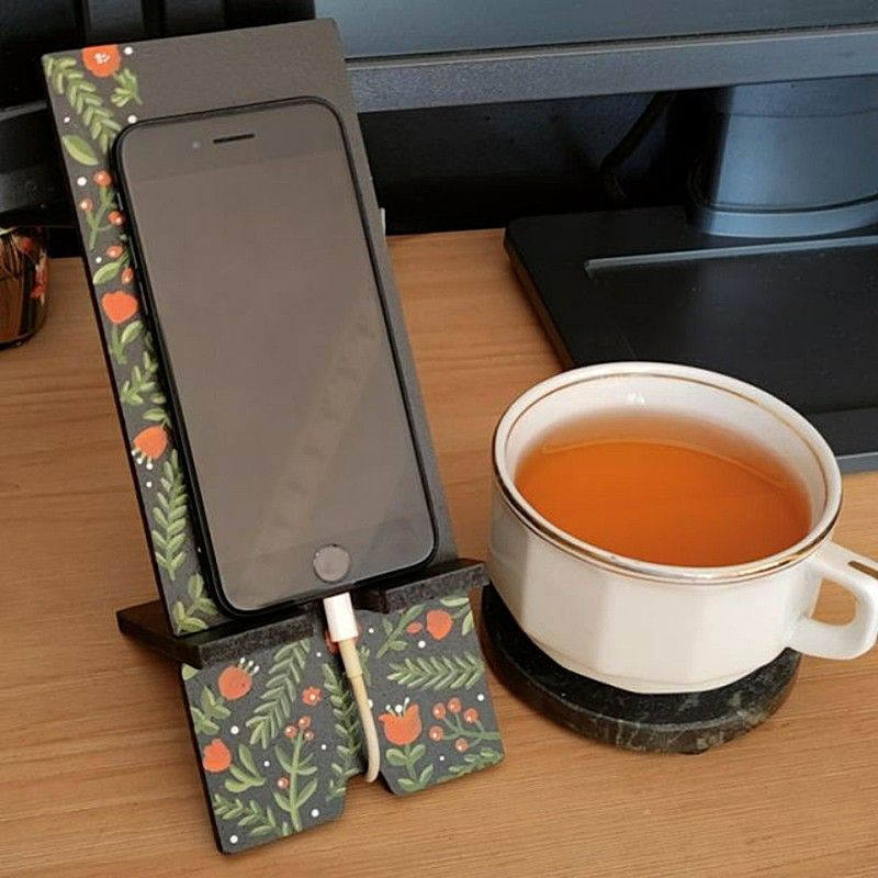 Dřevěný polotovar na výrobu originálního stojánku na telefon s prostorem na nabíjecí kabel. Výřez se dá vystavit v původní podobě, nebo ho předtím můžeme dozdobit různými technikami: