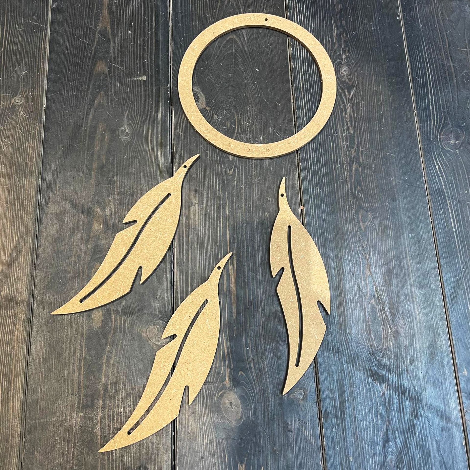 Dřevěný polotovar na výrobu dekorací. Je určen k výrobě vlastního lapače snů zavěšením dřevěných peříček do spodních dírek kruhu, lze ho využít i k sestavení mandaly. Výřez se dá vystavit v původní podobě, nebo ho předtím můžeme dozdobit různými technikami: