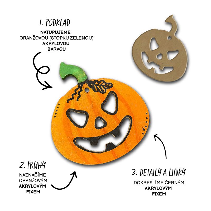 Dřevěný výřez ve tvaru dýně s otvorem na zavěšení. Přírodní odstín bez povrchové úpravy. Vhodný pro děti i dospělé. Rozměry 7 x 8 cm, tloušťka materiálu 6 mm. 1 kus. Celý popis