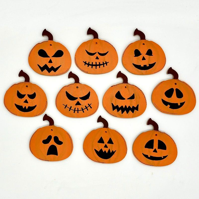 Dřevěný výřez ve tvaru dýně s otvorem na zavěšení. Přírodní odstín bez povrchové úpravy. Rozměr 7 x 8 cm, tloušťka materiálu 6 mm. 1 kus. Celý popis