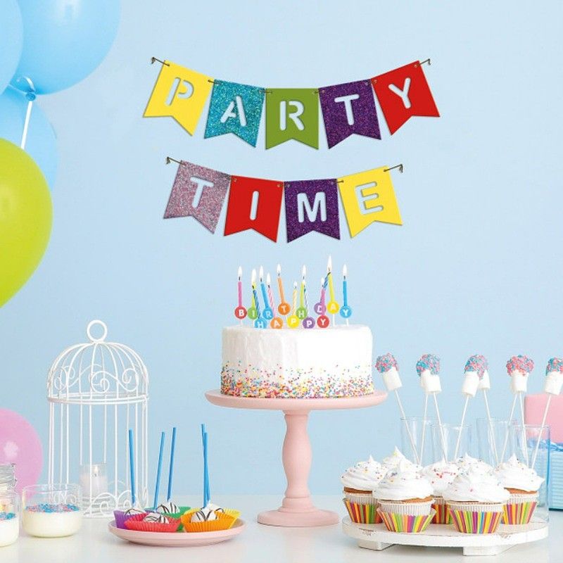 Sada dřevěných výřezů k dotvoření. Mají tvar vlaječek s dírkami k zavěšení a společně tvoří nápis "Party Time". Přírodní odstín bez povrchové úpravy. Rozměr praporku 9,9 x 8,6 cm, tloušťka materiálu 6 mm. 9 ks.