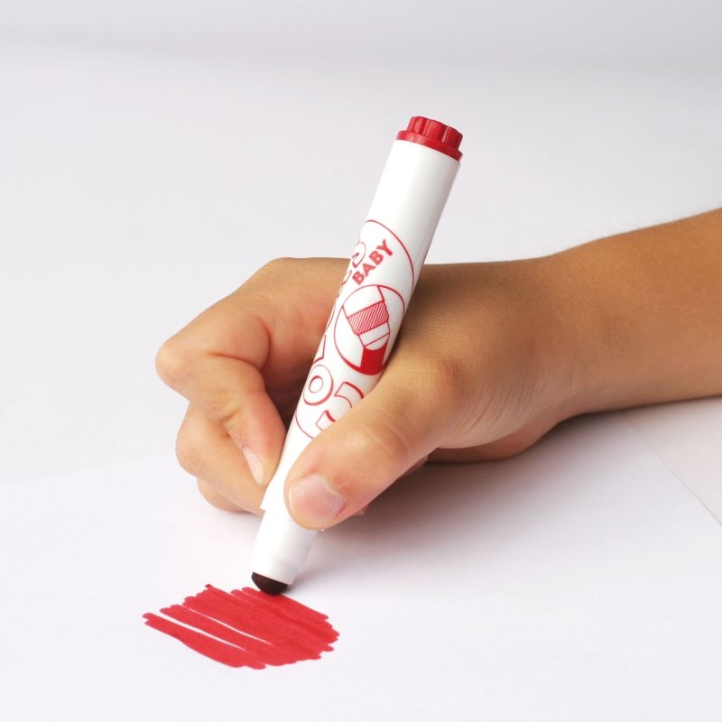 Fixy pro děti už od 2 let v sadě základních barviček jsou to pravé na první kreslení! Mají široké tělo ideálně tvarované pro pohodlný úchop v hrstičce i na trénování úchopu třemi prsty.