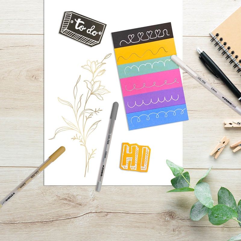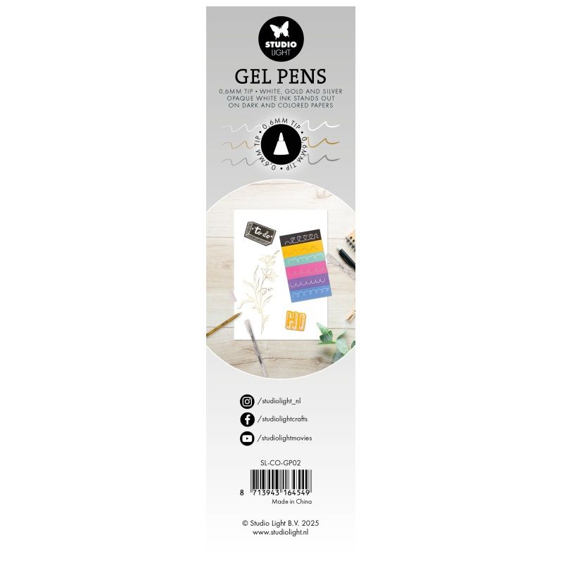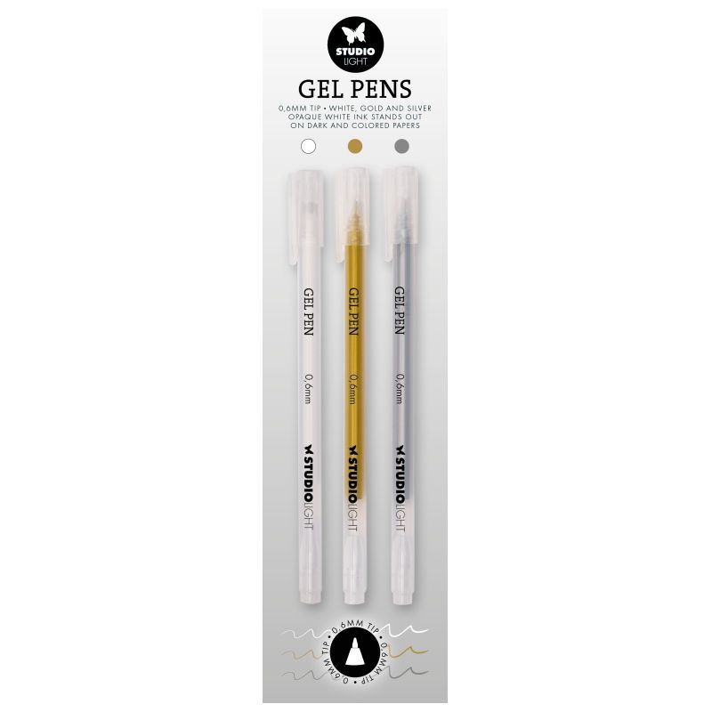 V sadě jsou 3 pera – bílé, metalické zlaté a metalické stříbrné. Kombinace barev je ideální na všechny slavnostní projekty od narozeninových přání po výrobu vánočních dekorací, využít se dají i k psaní poznámek, popisování fotografií, alb, apod.