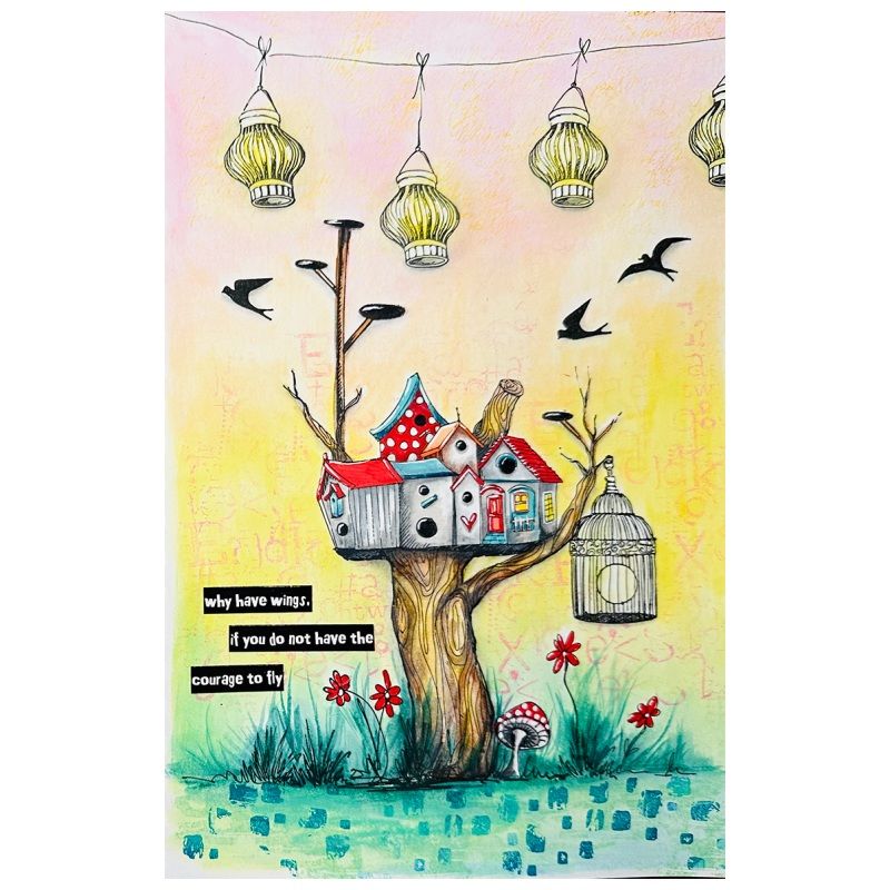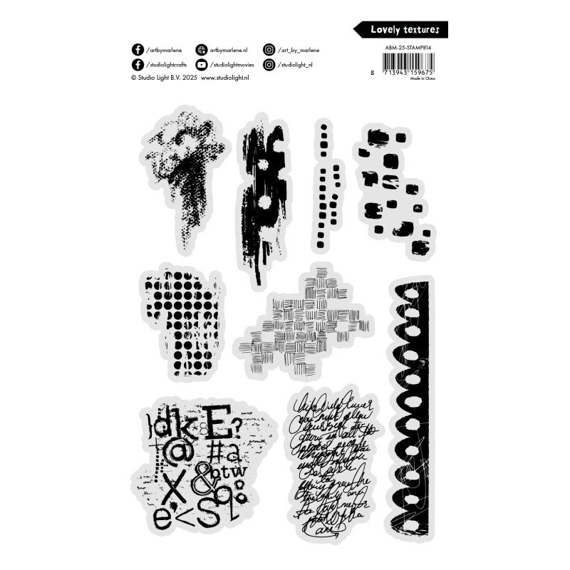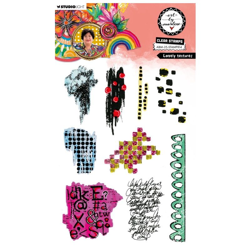 Gelová razítka v sadě s motivy kreativních dekoračních prvků, které navrhla umělkyně Art by Marlene , jejíž tvorba je svérázná a vesele barevná. Razítka jsou vyrobená z kvalitního čirého silikonu. Největší výhodou je jejich průhlednost – přesně vidíte, kam tisknete. Používají se s akrylovým blokem .