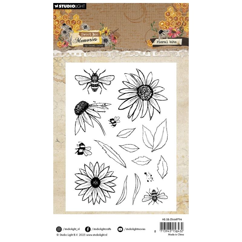 Gelová razítka v sadě s motivy květin a včelek z kolekce Sweet Bee Memories jsou vyrobená z kvalitního čirého silikonu. Největší výhodou je jejich průhlednost – přesně vidíte, kam tisknete. Používají se s akrylovým blokem. Je možné si na bloček naskládat více motivů a složit si tak i „vlastní“ razítko.