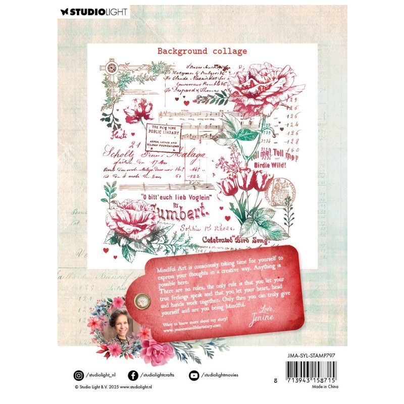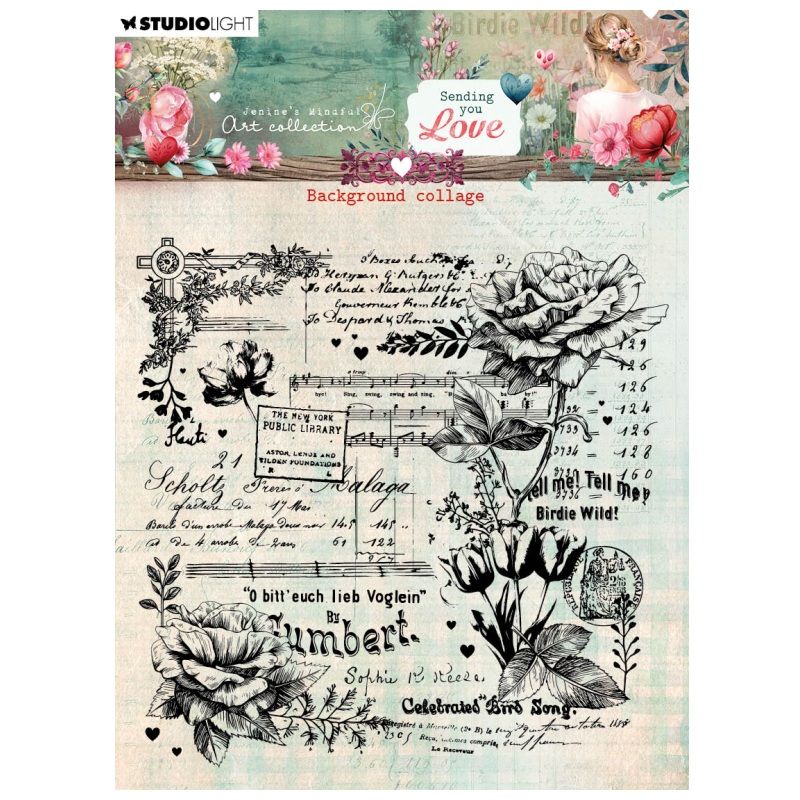 Gelové razítko s motivem koláže růží, notiček a písma z kolekce Sending You Love poslouží skvěle jako pozaďový element, na který se navrství další elementy – razítkovací inkoust lze také nanést jen na část razítka a otisknout jen jeho část. Gelová razítka jsou vyrobená z kvalitního čirého silikonu. Jejich největší výhodou je jejich průhlednost, proto se i snadno aplikují, jelikož přesně vidíte, kam tisknete. Používají se s akrylovým blokem.