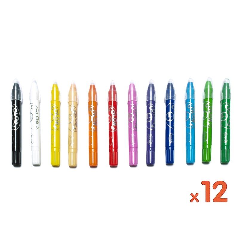 Sada akvarelových voskovek ve 12 barvičkách je perfektní pro hraní a tvoření s dětmi již od 3 let! Určitě víte, že obyčejné voskovky vodu odpuzují, ale tyto s vodou naopak reagují a dají se po papíře krásně rozmývat. Na rozdíl od klasických vodových barev jsou voskovky vysoce pigmentované – mají úžasně výrazné a zářivé barvy.