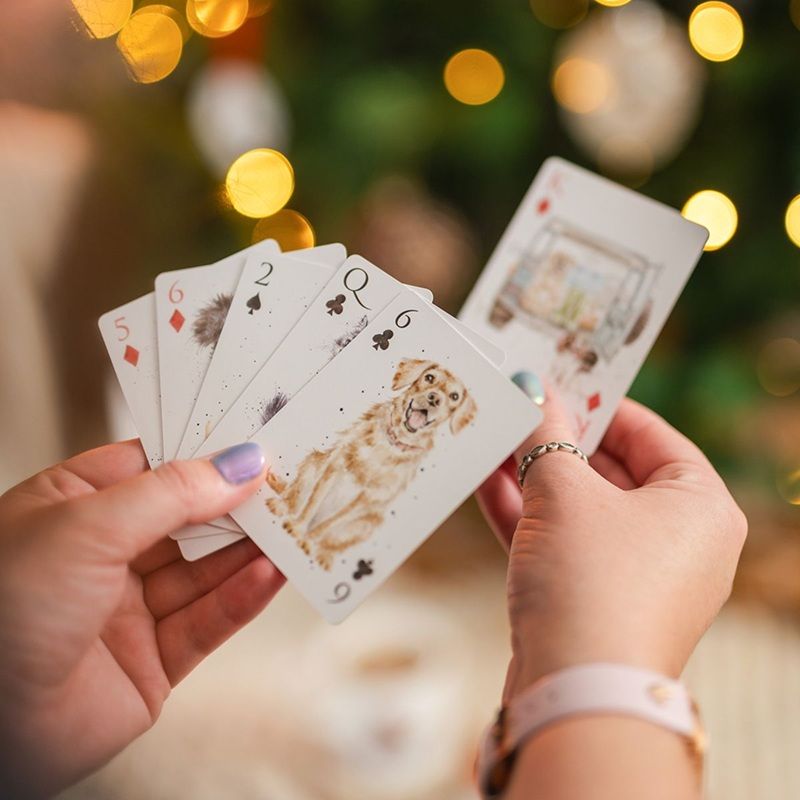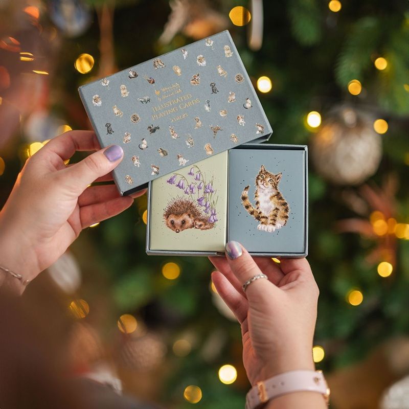 Hrajte si stylově se sadou hracích karet od britské firmy Wrendale Designs ! Najdete v ní 2 různé balíčky karet – jeden s motivy lesních zvířat, druhý s motivy různých plemen pejsků a koček, každá karta má svůj vlastní obrázek. Všechny ilustrace pochází ze štětce Hanny Dale, která zvířátkům dává svůj osobitý akvarelový styl.