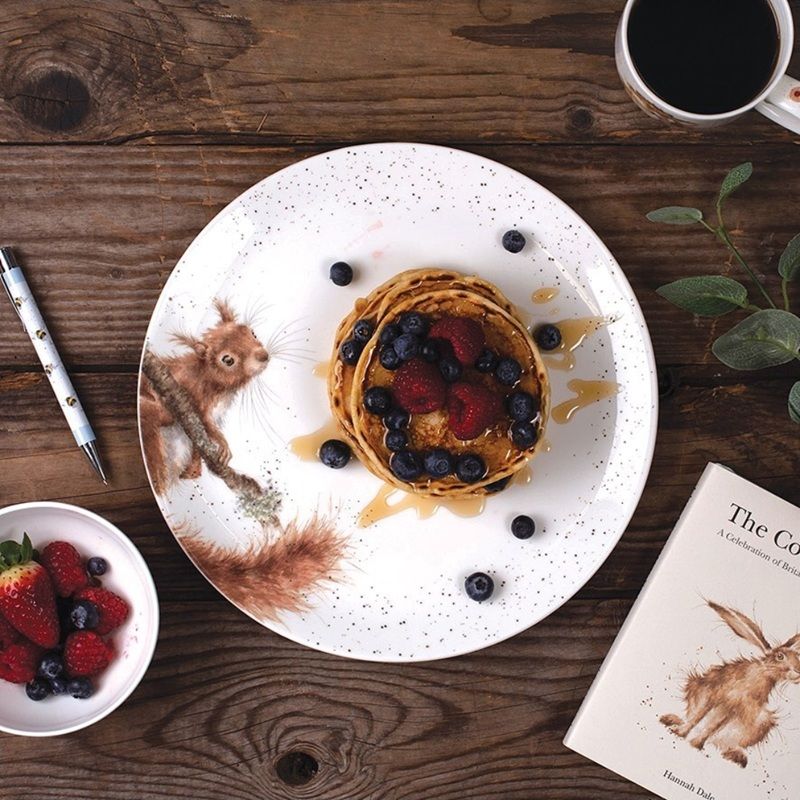 Velké jídelní talíře na servírování oběda nebo večeře si získají srdce rodiny i hostů osobitými malbami lesních a polních zvířátek, která jakoby do talířů nakukují zpoza jejich okrajů – kačer, myška, zajíček a veverka jsou rozpoznatelně součástí stejné kolekce a budou ozdobou slavnostní tabule i každodenního hodování.