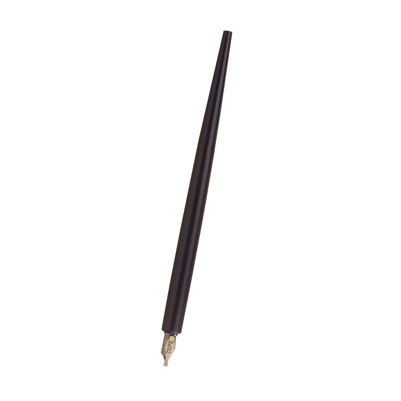 Namáčecí pero se skládá z dřevěné násadky a vyměnitelné kovové špičky se seříznutým plochým hrotem. Kovové perko má rezervoár (zásobník), díky němuž není nutné tak často namáčet pero do inkoustu. S plochým hrotem vytvoříte snadno hranaté tvary i ostře lomená písmena. Perko se seříznutým hrotem zanechává širokou stopu při psaní v jednom směru a tenkou stopu v druhém směru. K sadě lze dokoupit i náhradní perka pro latinskou kaligrafii.