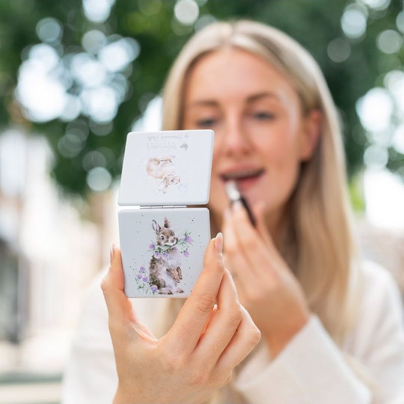 Cestovní zrcátko od britské značky Wrendale Designs bude praktickým doplňkem do každé kabelky! Od obyčejných kapesních zrcátek ho odlišují nezaměnitelné akvarelové ilustrace zvířat malířky Hanny Dale, které najdete z obou stran skořepiny zhotovené z hladké veganské kůže. Uvnitř jsou 2 zrcátka, klasické a zvětšovací.