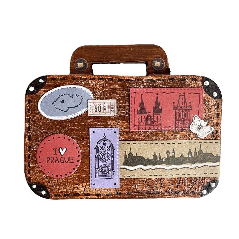 Kartonový kufřík určený k dalšímu dotvoření. Po dozdobení může sloužit k šikovnému ukládání věcí, jako hračka pro malé cestovatele či jako originální doplněk home deco.