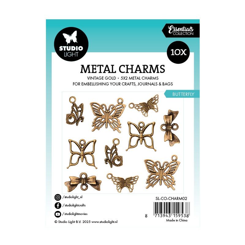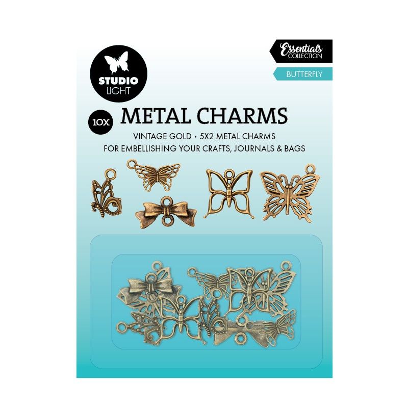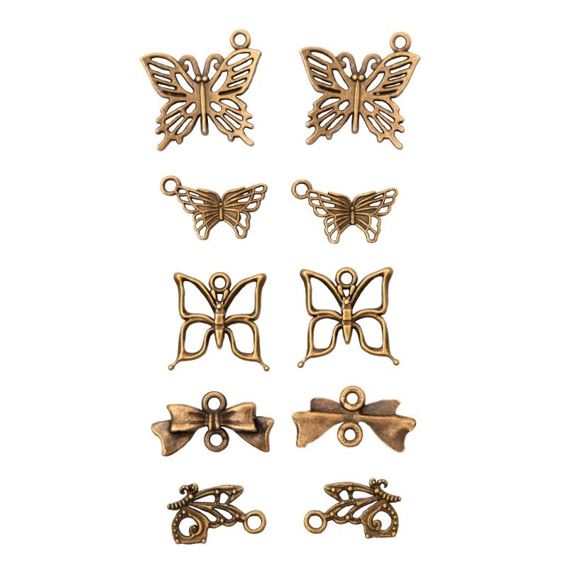 Drobné kovové přívěsky ve zlatém provedení se stylovou vintage patinou se hodí ke zdobení různých kreativních projektů od papírového tvoření až po bižuterii. Využijete je ke zdobení scrapbooků, přání, visaček, záložek do knih, dárkových tašek a krabiček apod., jdou zakomponovat i do vlastnoručně vyrobené bižuterie.