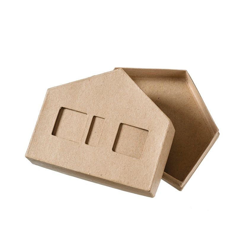 Kartonová krabička ve tvaru domečku vhodná k dalšímu dozdobení. Krabičku můžete natřít akrylovou barvou , diamantovými pastami , polepit rýžovým papírem nebo použít zlacení či mramor.