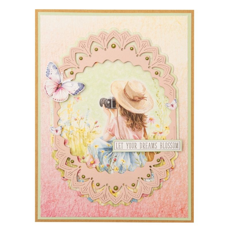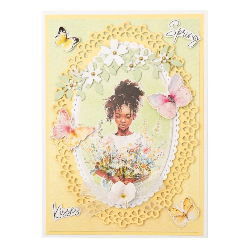 Velké podkladové papíry jsou ideální na výrobu dekorací, třeba ke zdobení dřevěných polotovarů. Menší archy poslouží krásně jako přední strana přáníčka formátu A6. Mezi obrázky najdete mimo jiné zasněné dívky, luční květiny, motýlky, králíčky a štěňata, plus štítky s nápisy v angličtině.