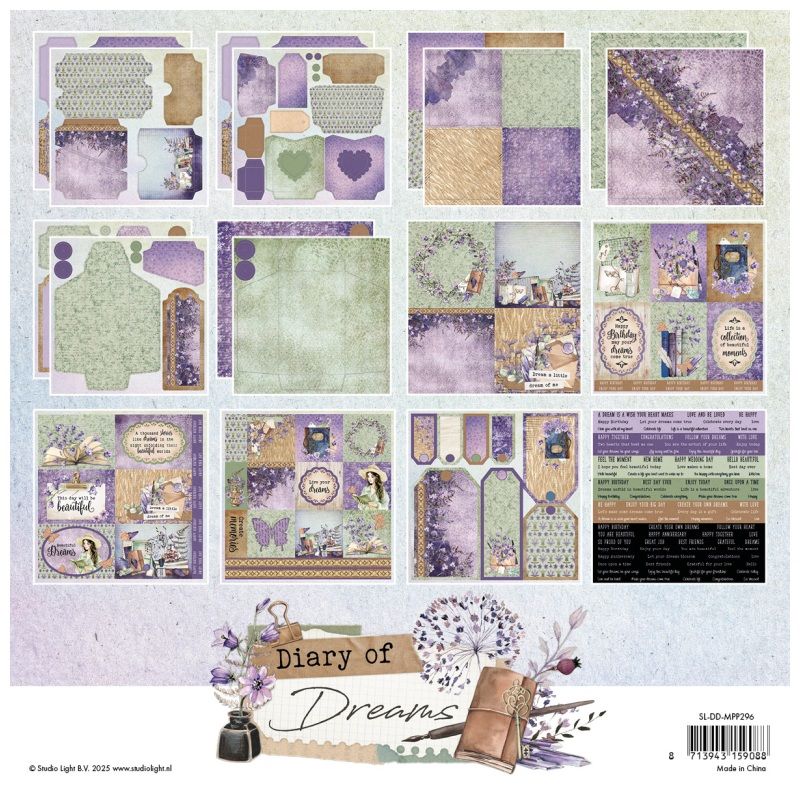 Blok papírových výseků a obrázků v bloku ze zasněné kolekce Diary of Dreams obsahuje materiál na výrobu několika krásných obálek, papírových kapsiček, přání a visaček či záložek do knih. Pláště obálek a kapsiček jsou předvyseknuté, stačí je ze stránky pouze vyloupnout, nemusí se vystřihovat.