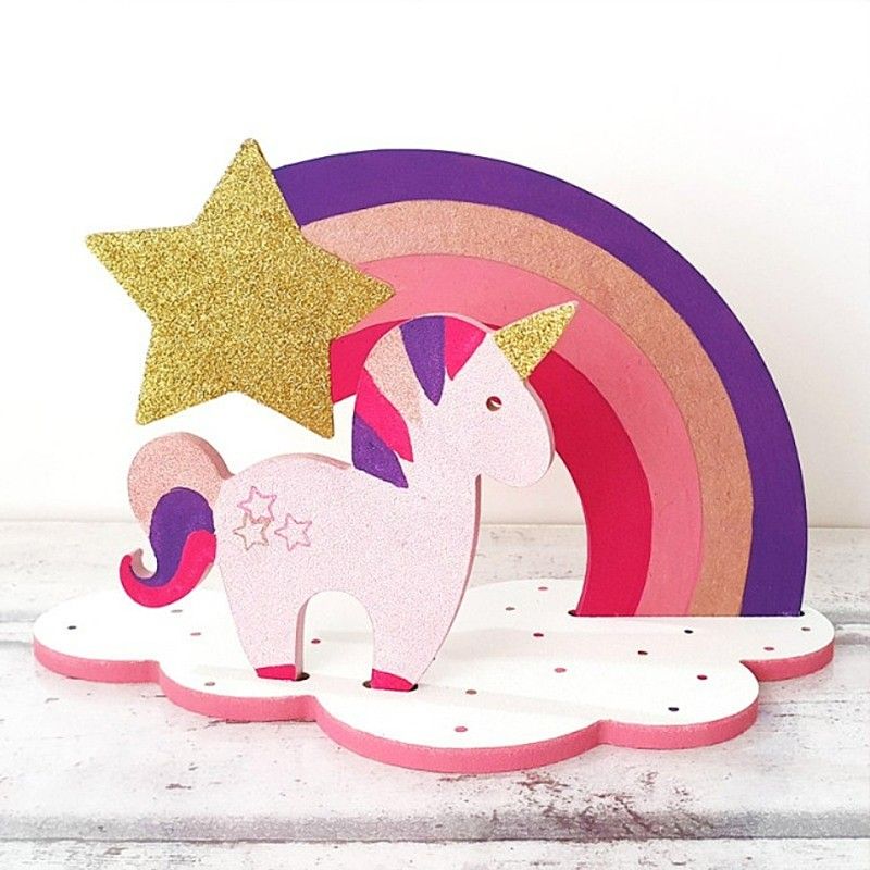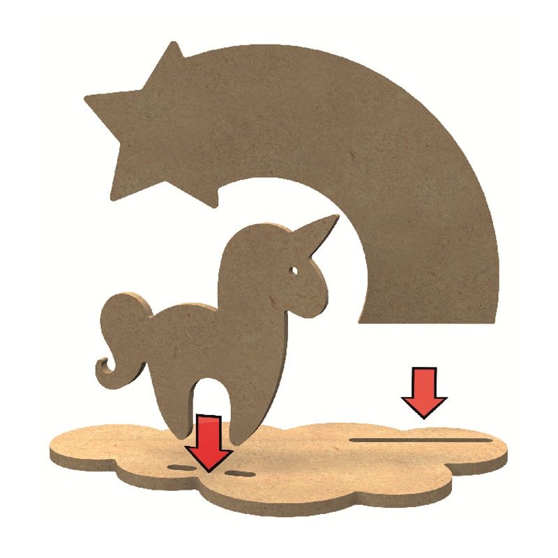 Kreativní sada obsahuje 2 dřevěné výřezy – jednorožce a velkou kometu. Ty jde dozdobit, zasadit do přibaleného stojánku a dát na výstavku. Jaké bude mít jednorožec barvy, uděláte kometu proužkovanou? Je to jen na vás!