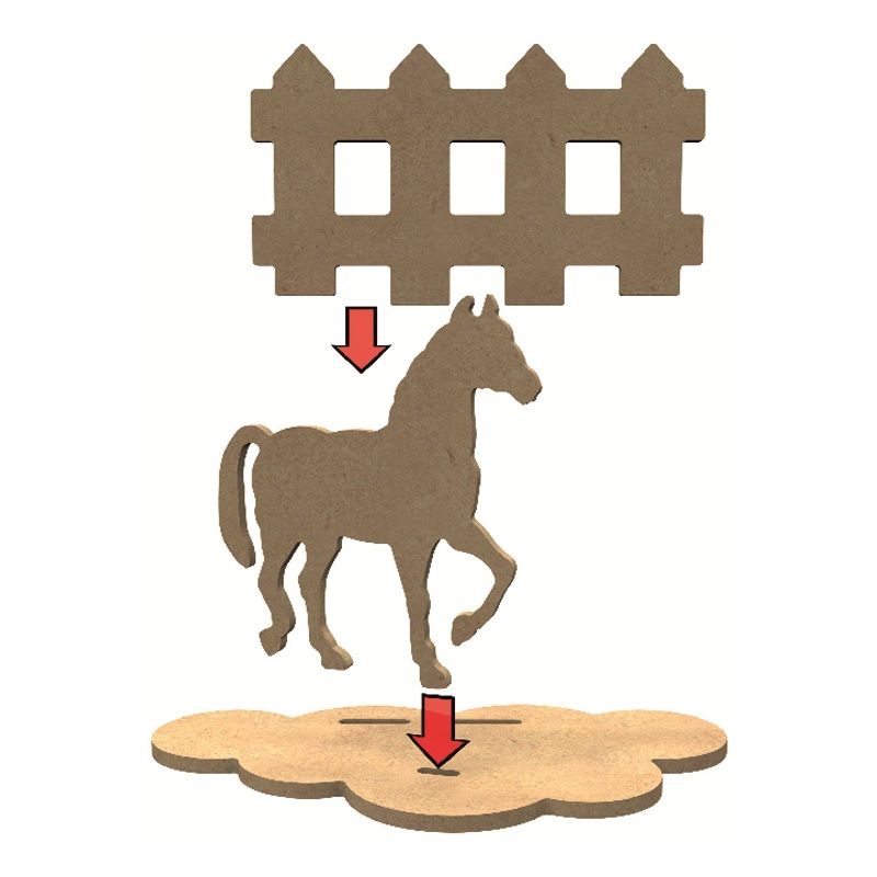 Kreativní sada obsahuje 2 dřevěné výřezy – koníka a plot ohrady. Ty jde dozdobit, zasadit do přibaleného stojánku a dát na výstavku. Bude z něj bělouš, hnědák nebo třeba vraník? Je to jen na vás!